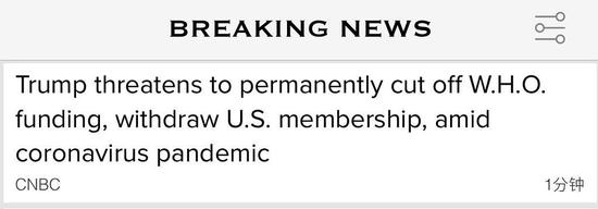 特朗普威胁称美国永久“断供”并退出世卫组织