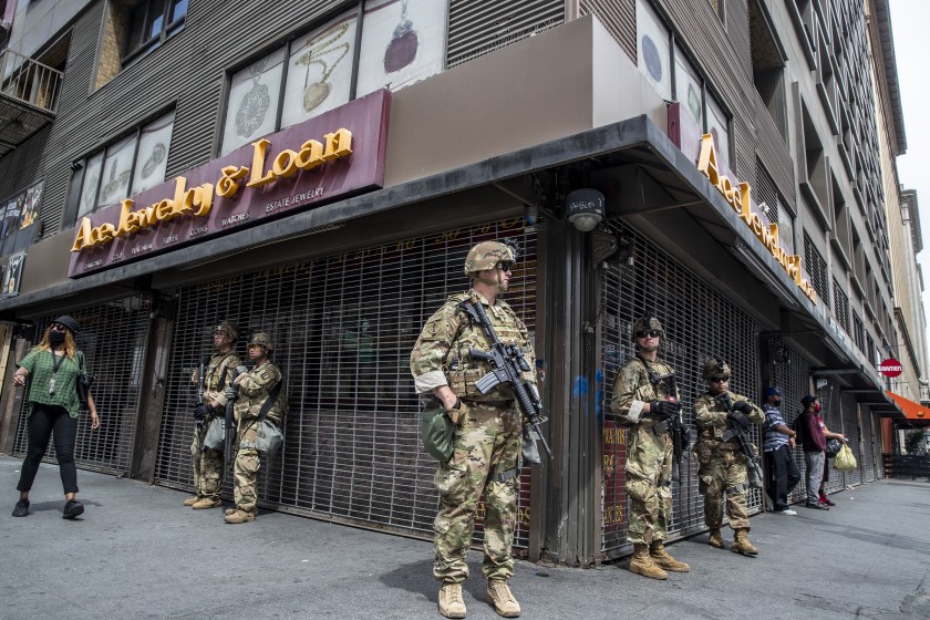 此前由于抗议活动中出现的一些激进行为,给洛杉矶地区的治安带来压力,洛杉矶市长于5月30日召集了近千名国民警卫队人员,紧急入驻洛杉矶市,来维持抗议活动期间的社会安全,并宣布该地区进入宵禁状态。但随后的抗议活动趋于和平,冲突事件逐渐减少,洛杉矶市长宣布解除宵禁的同时,同意撤离不必要的国民警卫队力量。