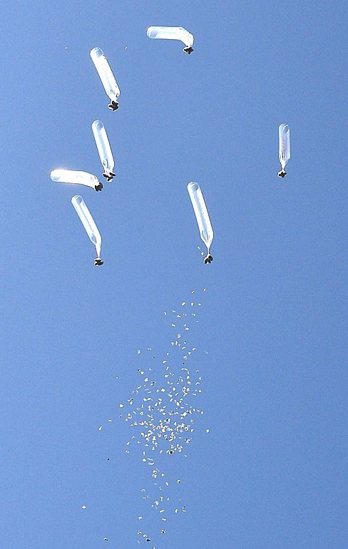 资料图:韩国“脱北者”用气球撒传单(纽西斯通讯社)