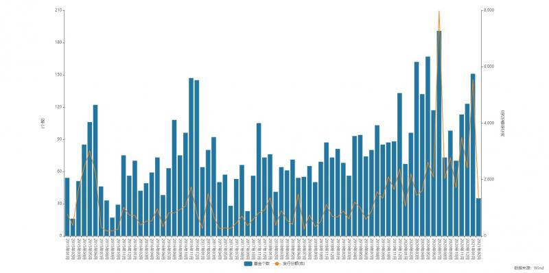 2017年1月至2021年2月的月度基金成立情况 来源:Wind