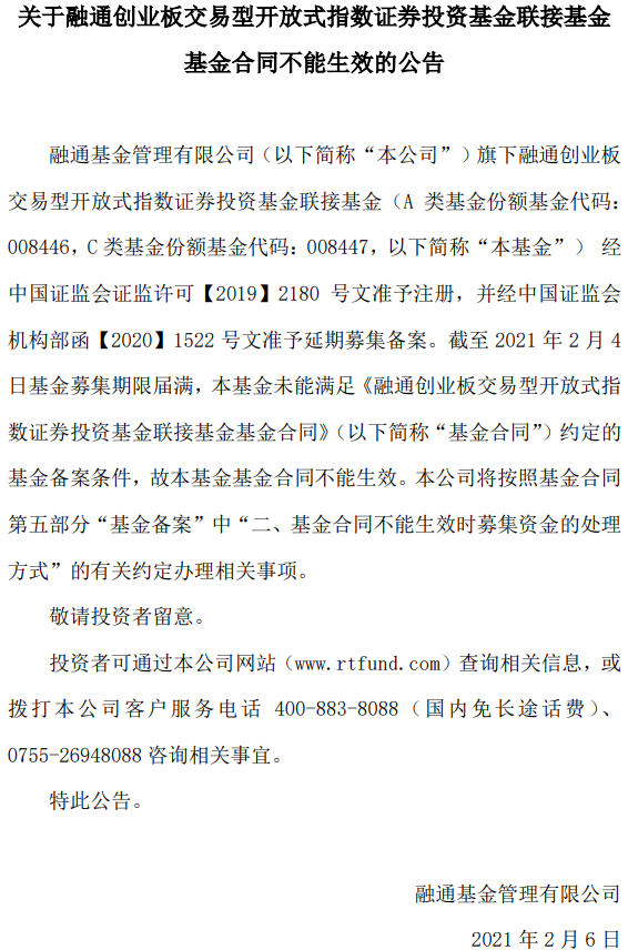 而融通创业板交易型开放式指数证券投资基金联接基金同样用满了募集期。