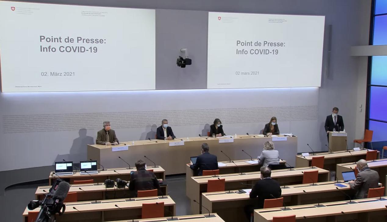 当地时间3月2日,瑞士联邦卫生局举行新冠肺炎疫情新闻发布会