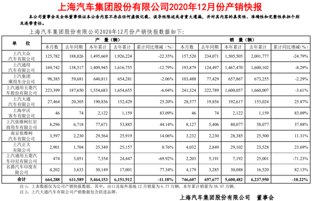 上汽集团表示,在全球经济恢复性增长、我国宏观政策“不急转弯”以及车市同比基数相对较低等有利条件下,2021年国内汽车市场有望结束2018年以来的连续下滑,预计国内市场整车需求2610万辆,同比增长3.1%;其中乘用车2150万辆,同比增长7.3%;新能源汽车销量预计在170万辆左右,同比增长34%。