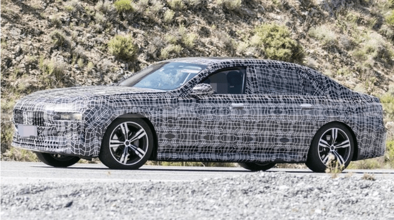 从侧面来看,全新7系车头处的机舱长度较现款会更长,中间有一条贯穿式腰线,让车身看起来更加修长,与iX同款的隐藏式门把手显得科技感十足,当然,这也是许多电动车惯用的设计方式了。