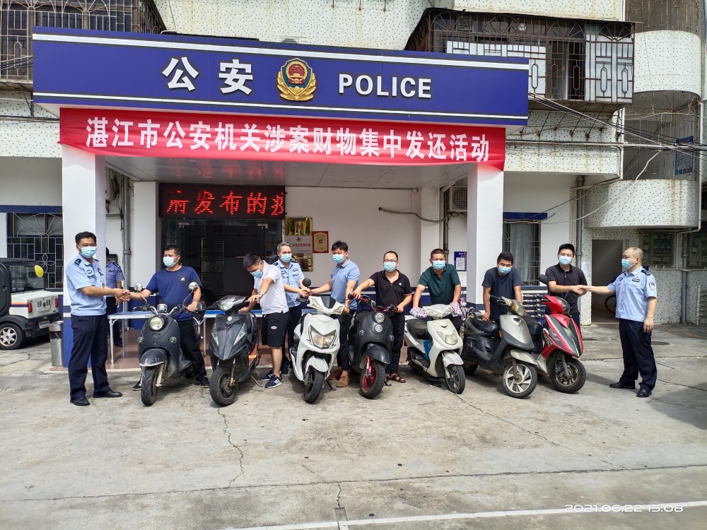 据统计,赤坎公安分局今年共打掉盗窃电动自行车团伙5个、抓获违法犯罪嫌疑人38名、侦破案件131宗,盗窃电动车警情同比下降40.1%,有效遏制了盗窃电动车及电瓶违法犯罪高发势头,赢得了市民的广泛赞誉。