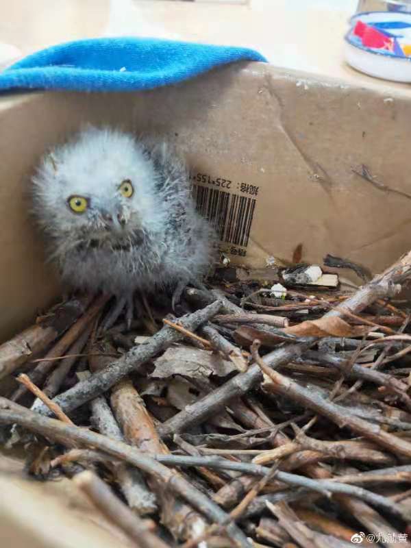 此后,修女士联系了离家较近的鸟岛公园,鸟岛公园与沈阳猛禽救助中心联系后将猛禽康复师白仁文的联系方式交给了修女士,修女士与爱人用纸箱装着雏鸟以及水和肉,将雏鸟送至鸟岛公园,由白仁文接走并照顾。