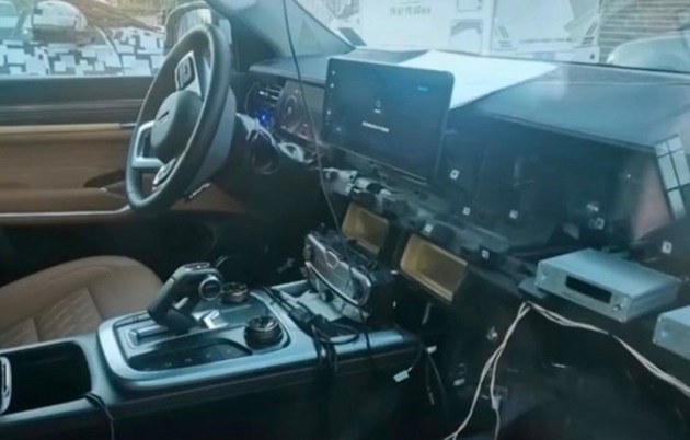 内饰上,我们从之前曝光的图片可以看出,新车将采用内嵌式液晶仪表以及悬浮式中控大屏,挡把区域与坦克300相似。副驾驶前方则没有装配完整,不知道这里以后是一块装饰面板还是显示屏。