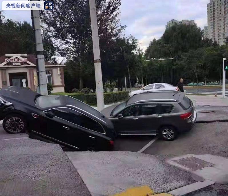 黑龙江哈尔滨一处道路塌陷 两车掉入深坑