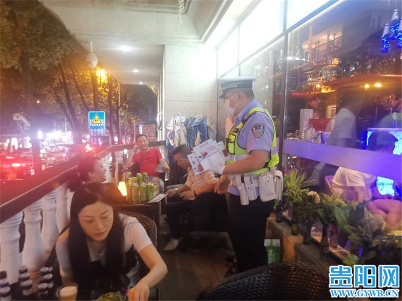 当晚,未来方舟沿河商业街、花香村文创园、盐沙大道周边村庄餐馆以及三县一市街头的酒吧,从餐饮娱乐集中地到城郊结合部,都可以看到贵阳交警的身影。