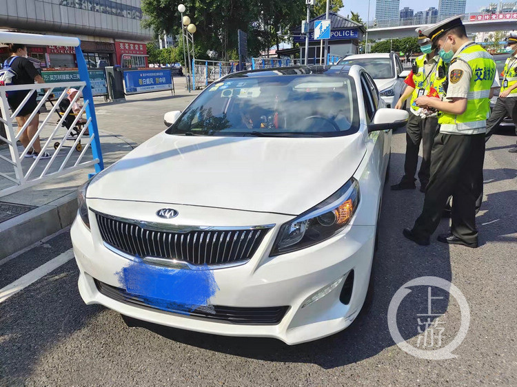 10月2日,上游新闻记者从轨道交通支队二大队获悉,在重庆北站南广场,执法人员巡逻时,发现停靠在重庆北站南广场汽车站旅客进站口附近一辆白色渝A牌照小型轿车形迹可疑,遂对该车进行现场检查。
