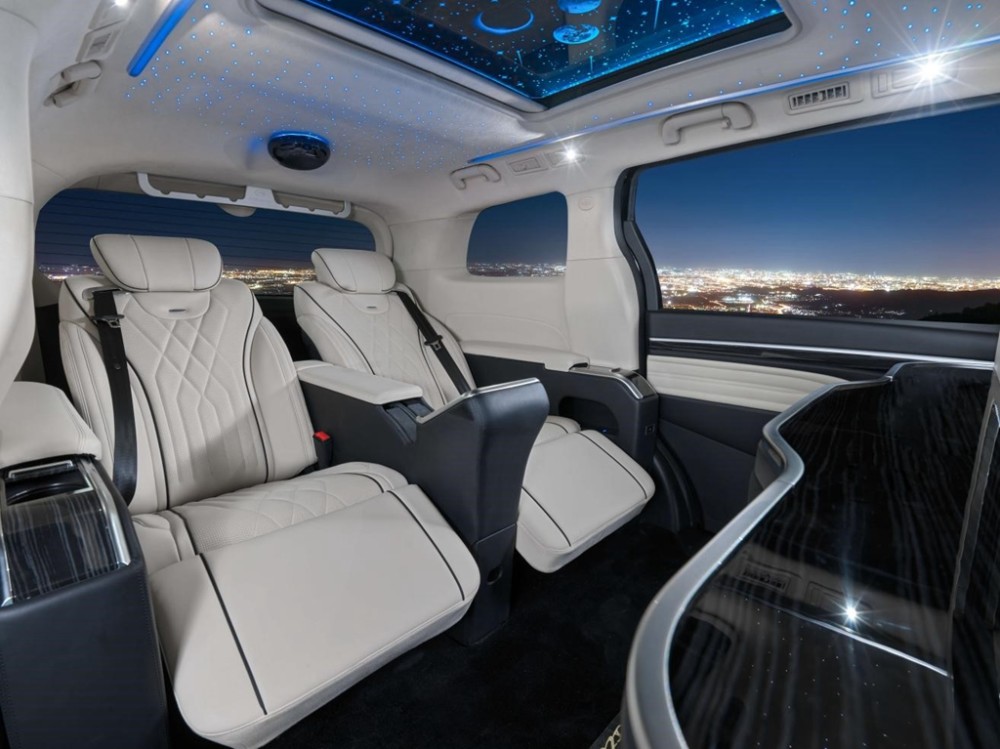 其中,传祺M8四座版车内采用高级雾化隐私玻璃,分隔驾驶舱和后排空间。车内还配备了34寸智能高清电视、哈曼卡顿品牌音响等影音设备、定制智能冰箱等。在空间方面,传祺M8四座版二排座椅坐宽达到500mm+,两侧扶手呈仿臀型弧面,同时配备靠背、头枕高度、腿托、前后等10向电动调节。座椅还配备麂皮包覆的便携式小桌板,可多档位角度调节。新车还配备了全新星空顶/玻璃天幕设计,给出行增添更多浪漫情调。二排配备车载大屏和多功能扶手液晶屏,集影音、娱乐、数据等多种功能于一体,满足了用户多样化和个性化需求。