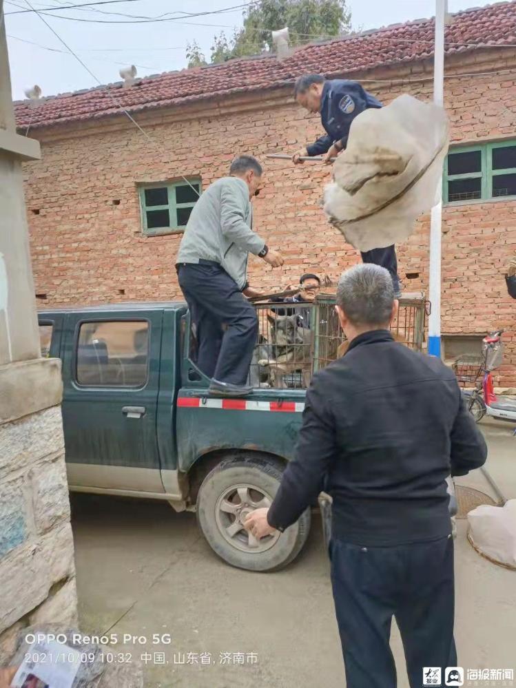 王胜说,汇报后,上级很重视,派出所也汇报给市公安局。其后,多个部门出动,并使用了无人机寻找。动物园专家根据图片,鉴定其为狼青犬。经过调查,大家在西渴马东村发现了两只涉事狼青犬,并于9日上午将其逮走。“很有攻击性,危害村民安全。”王胜说。