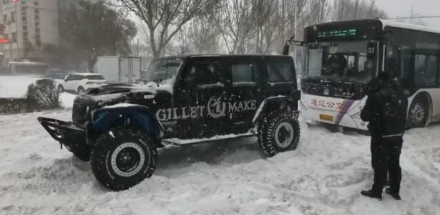 魏先生称,8日早上,他们遇到了在上班高峰期被困的几辆公交车,车上都是赶着去上班的乘客。“当时,我们看到陷进去的公交车后,就用绳索一头拴着公交车,一头拴在越野车上,用越野车往外拽,同时还有人在公交车后推,大约用了半个小时,把公交车从积雪中拽了出来,希望没耽误车上乘客上班。