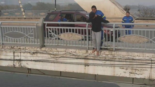 长沙一轻生男子突然爬上护栏,将要翻下瞬间被辅警一把拽下