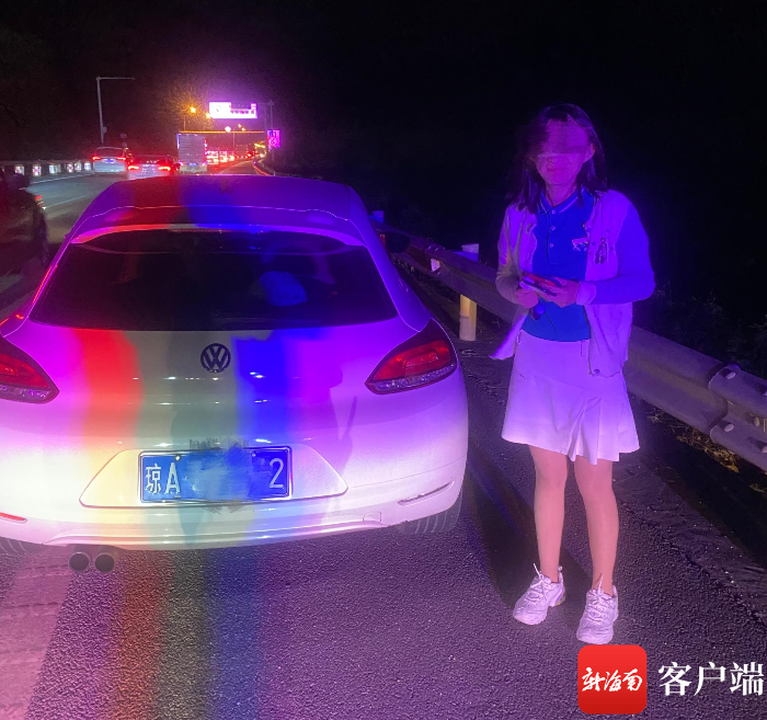 当小轿车行驶至G98海南环岛高速公路大茅隧道车流较少路段,三亚交警通过多次喊话引导,依法拦截该车辆。