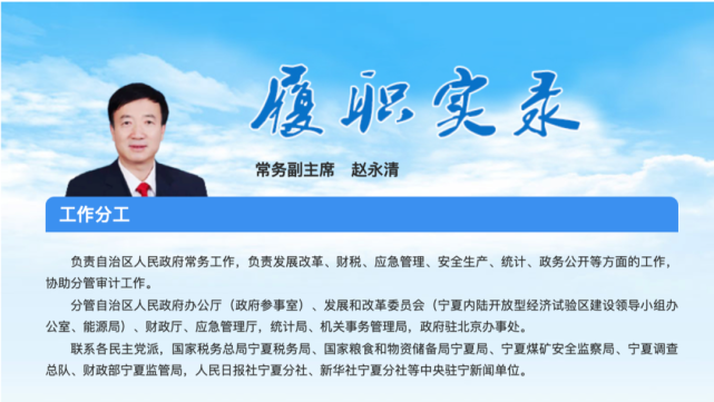 如今,担任宁夏回族自治区政府常务副主席半年之后,赵永清再添新职。