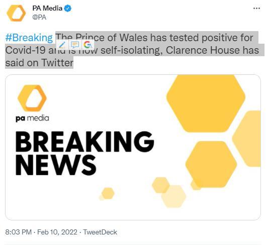英国查尔斯王子新冠病毒检测呈阳性