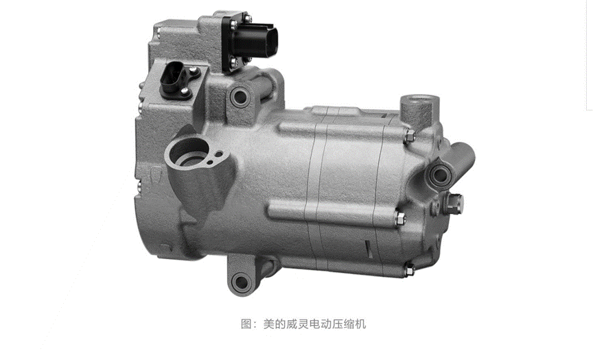 美的造车推出的第一款产品是R134a涡旋电动压缩机,转速达到12000rpm,支持三角循环制热,即使在零下30度情况下,依然能有效制热。
