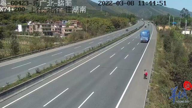 3月8日妇女节,在乐广北高速北行K74处,因夫妻间发生争吵,一名女子被丈夫“抛弃”在高速路面上。所幸京珠北“南岭先锋”路政队员及时救助,将其安全送出高速。