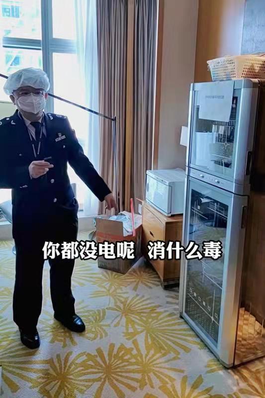 在月子中心的临时厨房里,执法人员看到,很多设施和功能尚不全,食材和非食材混放在一起,消毒锅甚至处于不通电状态,餐具消毒柜形同虚设。
