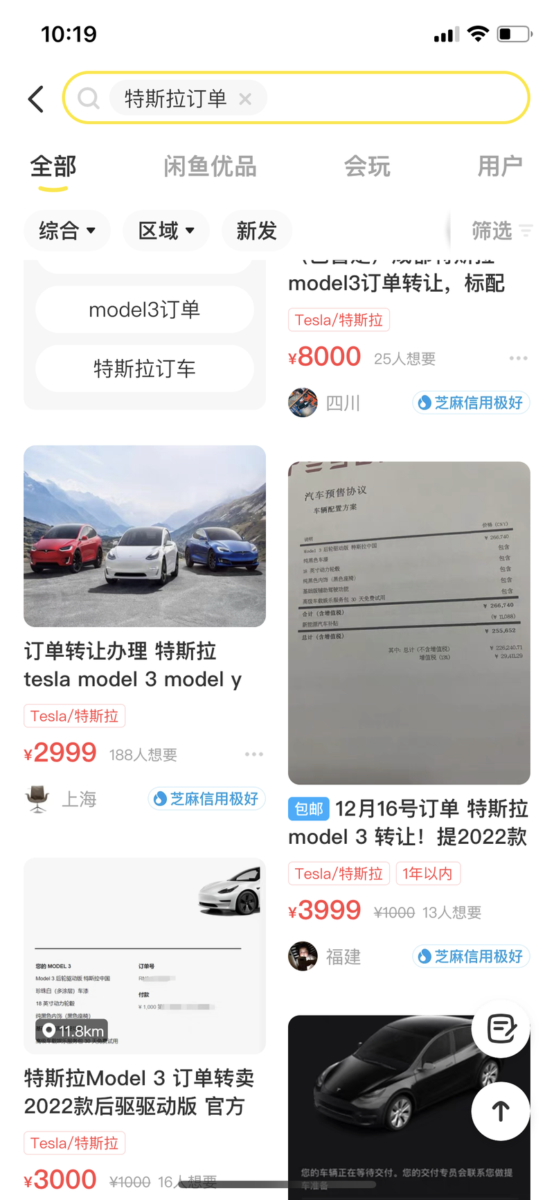 记者翻看某闲置交易平台发现,鉴于车型不同,每转让一个特斯拉订单可获得3000-8000元的报酬。这些订单均为春节前下定,在价格和提车周期上都有明显优势。