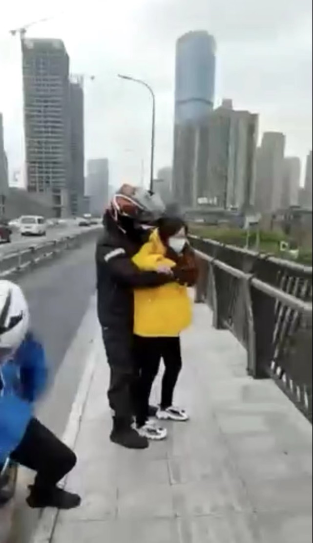 长沙女子跳桥被人抱住,热心大哥停车守护,交警:放心不抄牌