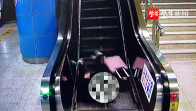 电扶梯上乘客不慎摔倒,他们双向奔赴紧急救援