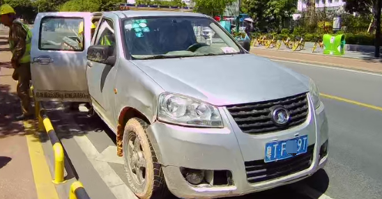 齐警官先绕车进行检查,发现皮卡车车身锈迹斑斑,有多处划痕、凹陷,车内更是杂乱,安全带悬在半空,存在安全隐患。等他走到车后,发现皮卡的车尾灯也坏了,后车牌也没有悬挂。李某解释称这车是公司的,车牌也不知道是什么时候丢的。他跟公司报备过,可是也没人处理,久而久之,他也就没当回事了。