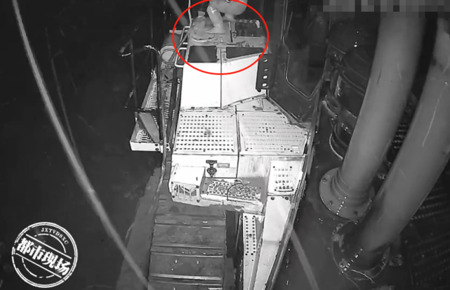 从画面中可以看到,一名男子爬上了挖掘机的油箱处,娴熟地打开了油盖,将一条管子插入油箱中,抽干柴油后扬长而去。虽然公共视频没有拍摄到面部,但民警还是从作案交通工具寻找到了破案线索。