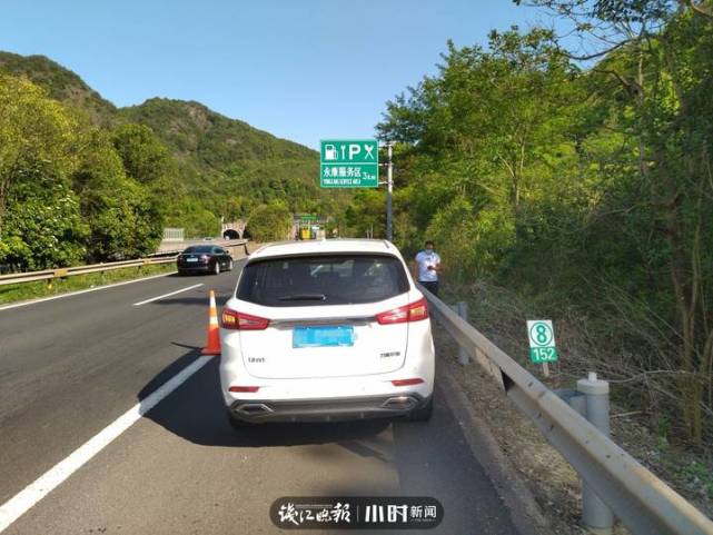 4月9日,台金高速台向K152+800处有一辆浙C牌照的小车因燃油耗尽无奈“趴窝”。