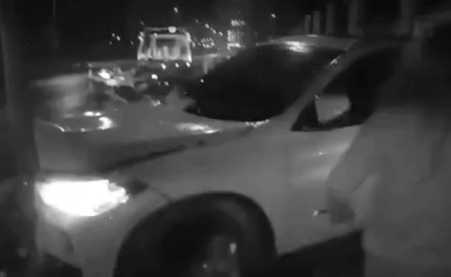 视频中显示,有群众报警称有两车相撞,男子驾驶一台吉普车,男子妻子驾驶一台宝马车。“他们要离婚,男的要开车撞他老婆。”现场群众向民警说道。