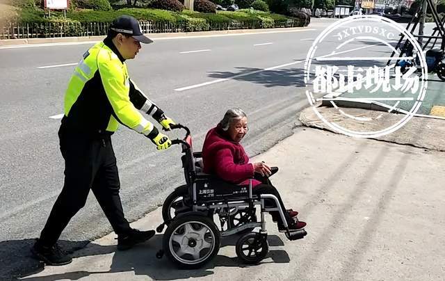 这一幕刚好被正在附近执勤的辅警看到,执勤辅警立即上前询问情况,并快速将轮椅车上的老人平安护送到马路对面。