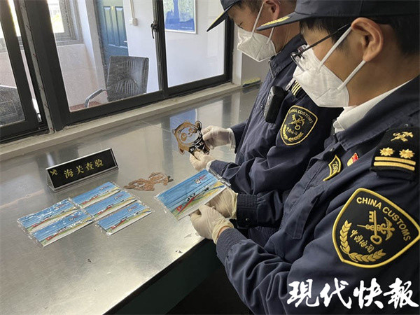 现代快报记者了解到,该关关员在监管出境邮件时,发现2批邮件机检图像异常。经开拆查验,2批邮件中分别装有印有“冰墩墩”形象和“2022BEIJING”文字标识的口罩6件、冰墩墩及雪容融金属模型2件。该批物品做工粗糙,外包装防伪标签为印制,且当事人无法提供合法购买渠道证明,涉嫌侵犯海关总署备案保护的2022北京冬奥会(冬残奥会)相关特殊标志专有权。