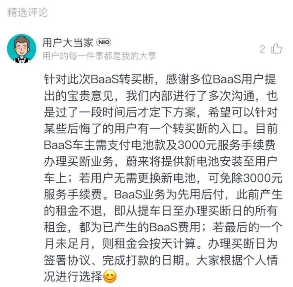 4月25日,蔚来推出了BaaS转买断服务。
