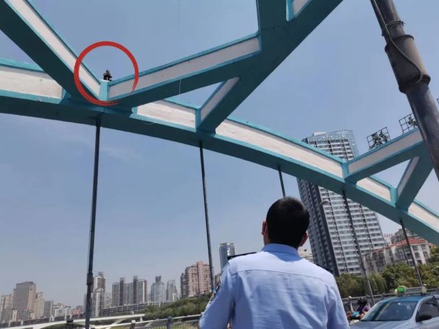 据涪城公安,5月6日10时许,涪城区公安分局小浮桥派出所接群众报警称,一男子爬上饮马大桥顶扬言跳桥。到达现场后,民警看到该男子所蹲坐的桥顶位置距离桥面有20余米的高度,距离江面50余米高,且桥顶边无任何救援着力点,一旦贸然强行施救,可能造成男子意外坠桥,危及性命。民警一边疏散桥面围观群众与车辆,一边通过一个便携式音箱对该男子进行反复喊话劝导。“有什么问题,我们下来以后好好说!”可该男子始终不予配合,不断在桥顶走动,拒绝接受民警和现场人员的救援。12时许,民警朱亮从与该男子的交谈中了解到,其扬言自杀是为了炮制新闻,制造社会影响,迫使其女友到现场与其见面。