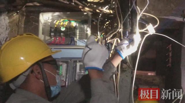 极目新闻记者注意到,查处现场所在的楼栋非常老旧,从一楼门口处的电表箱向内延伸的多条线缆交织在一起,在昏暗的环境下通过肉眼很难发现有哪些不正常之处。
