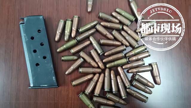 民警现场清点,发现共有40多发子弹及一个弹夹。