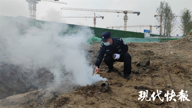 工地挖出炮弹冒起白烟,南京特警迅速处置