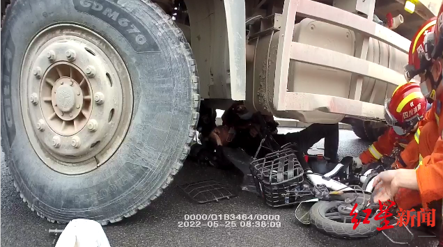 大爷被卷进大货车底仅仅右腿受伤 消防十分钟完成救援