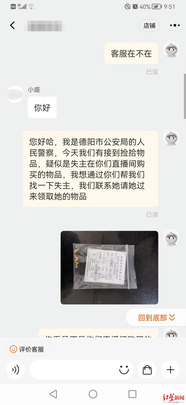 “ID通常是线上交易才会用的,那极有可能这袋金珠子是通过线上销售的方式购得的。”蒋媛媛介绍,她自己有通过直播平台购物的经历,抱着试一试的心态,通过各大线上购物平台和直播平台对卡片上的珠宝公司进行搜索,在某直播平台还真找到了这家公司。