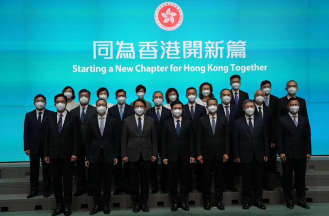 6月19日下午,李家超率领新一届政府主要官员在政府总部会见媒体记者,3位司长、3位副司长、15位局长、5位主要官员(警务处长、廉政专员、海关关长、入境处长、审计署长)和特首办主任共同亮相。