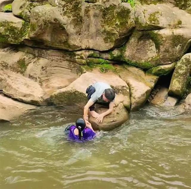 6月18日,重庆一景区内,一女子游玩过程中不慎坠河,幸亏景区多名保安和热心群众及时将其拉上了岸。