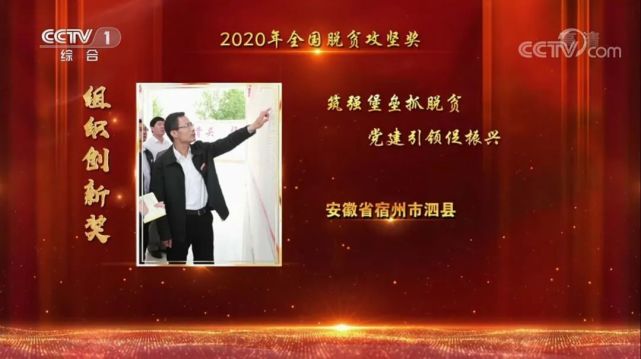 2020年10月,全国脱贫攻坚奖表彰大会暨先进事迹报告会在京举行,泗县荣获2020年全国脱贫攻坚组织创新奖。