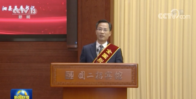 《新闻联播》画面显示,张志强在台上作了事迹报告。