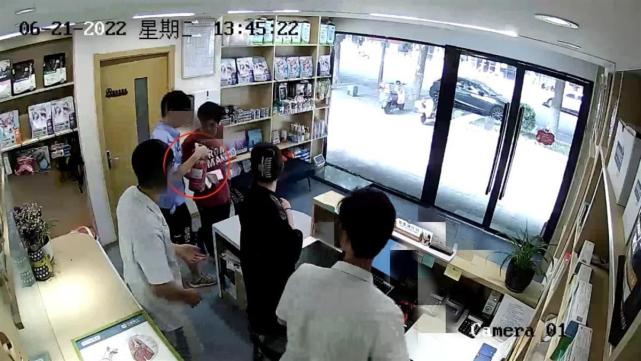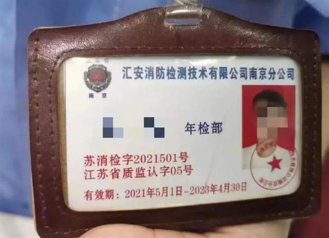 监控视频显示,一名男子上身穿着一件与公安制服类似的蓝色短袖,下身则是短裤。其一进门便说:“灭火器检测。”随后认定商户的灭火器过期,需要维修更换。有商户询问其身份,该男子表示自己是“汇安消防公司”。该男子胸前佩戴工牌显示为汇安消防检测技术有限公司南京分公司。