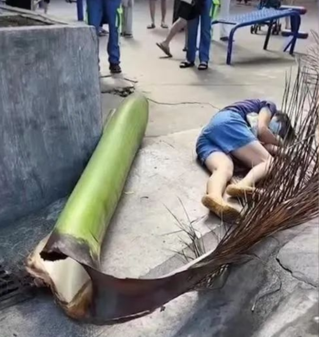 6月22日,一段关于路人被海珠区华盛公园大王椰子树树叶砸伤倒地不起的视频在网上热传。视频显示,树叶有近2米长,一旁有人晕倒在地。