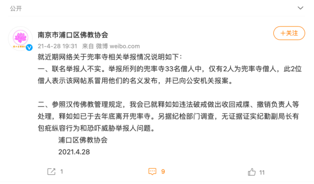 这起举报风波发生几个月之后,2021年10月,南京市佛教协会在中国佛学院栖霞山分院举行全市佛教界教风建设警示教育大会。当时,纪勤出席。