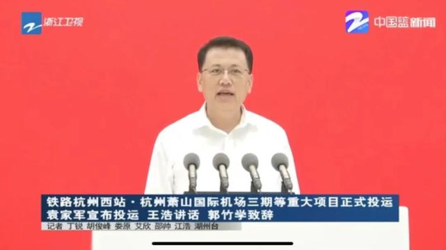 再往前,9月22日,铁路杭州西站、湖杭铁路、杭州机场轨道快线和杭州萧山国际机场三期正式投运,当时,浙江省委书记袁家军宣布投运、省长王浩讲话。