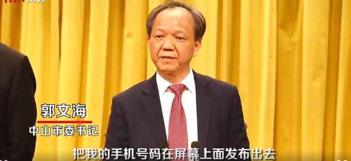 2月4日,“广东发布”消息,上述会议进行过程中,中山市委书记郭文海带领主席台上的市领导集体起立,向企业家们致敬,随后全程站立讲话约二十分钟。