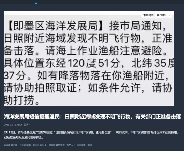 山东海域现不明飞行物?官方:准备击落
